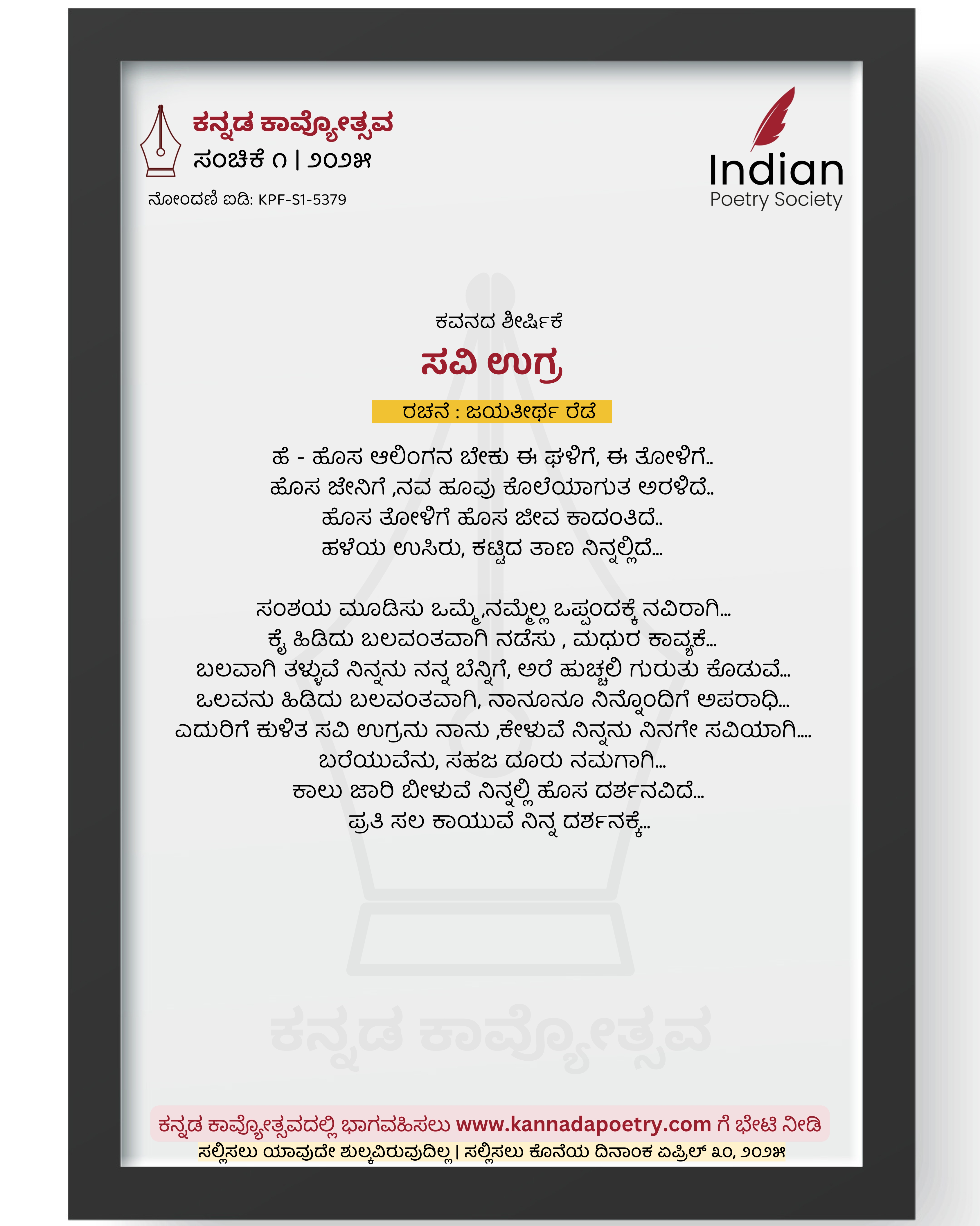 ರಚನೆ : ಜಯತೀರ್ಥ ರೆಡೆ